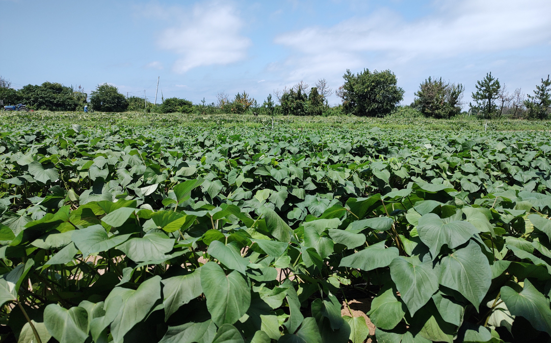 さらさらの砂の畑が広がる砂丘地。水はけが良く元気に育ち、肌のきれいなさつまいもができます。さらに、地域の食物残差を利用して作られた堆肥を入れ、有機質の肥料を使用し必要な養分を加えて土づくりをすることにより味の濃いサツマイモに育ちます。元気に育ちしっかりとでんぷんを貯めたサツマイモは追熟によりとっても甘くなります。