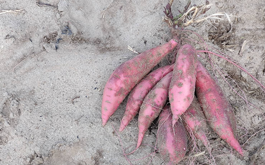 紅はるかは、収穫直後はホクホクでほんのり甘いお芋です。